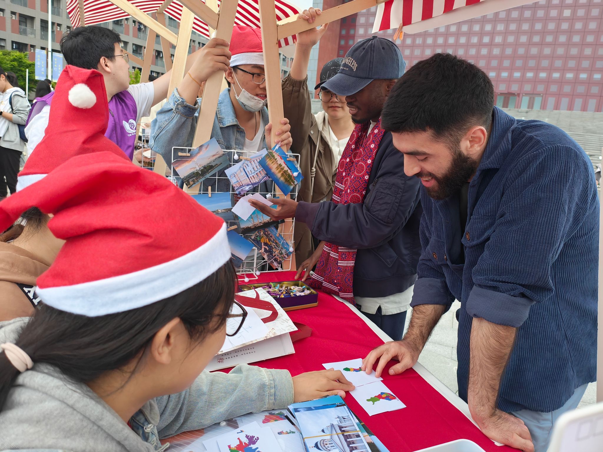 本次展台,同学们基于bv1946伟德官网特色课程《北欧社会与文化》,自发设计了丰富多彩的展板,通过张贴海报,从文化、社会、历史、地理等不同领域呈现北欧独特风情,为师生们带来一场“沉浸式”的异域文化体验。展台的同学们还策划了精彩小游戏,例如人文知识有奖问答、北欧地图对对碰等。本次“北欧风情之旅”展台吸引了众多中外师生驻足浏览,通过与来自不同文化背景的人们交流,大家掀开了北欧各国的神秘面纱,携手共赏多彩的文化画卷,彼此也收获了热情、友谊与理解。