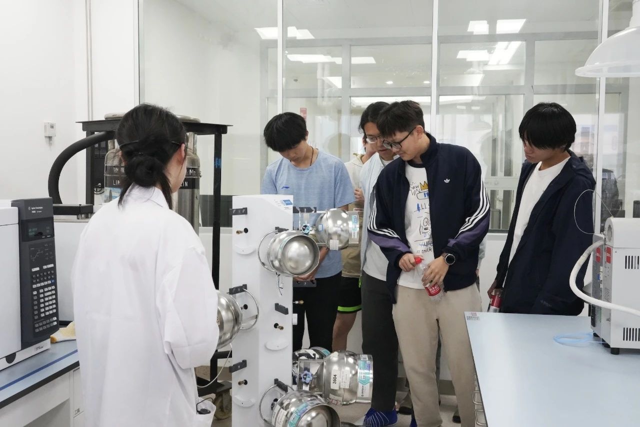 在有机分析实验室,分析测试科的工作人员向师生着重介绍了新污染物的分析流程,展示液相色谱质谱联用仪、气相色谱质谱联用仪等先进设备。